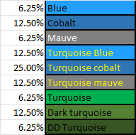Genetic prediction: 25% blue, 25% turquoiseblue, 25% American white, 25% American turquoiseblue