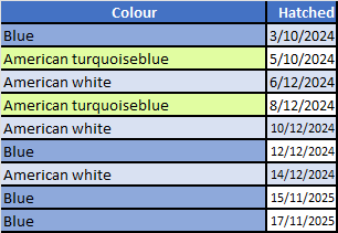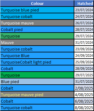 Genetic prediction for COLOURS is shown below. N.B. Approximately 1 in 4 birds will also be pied.