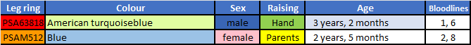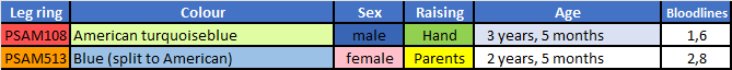 Genetic prediction: 50% blue, 50% turquoiseblue. All young are split to American.