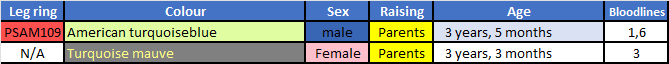 Breeding history for proven pair 3 is shown below: